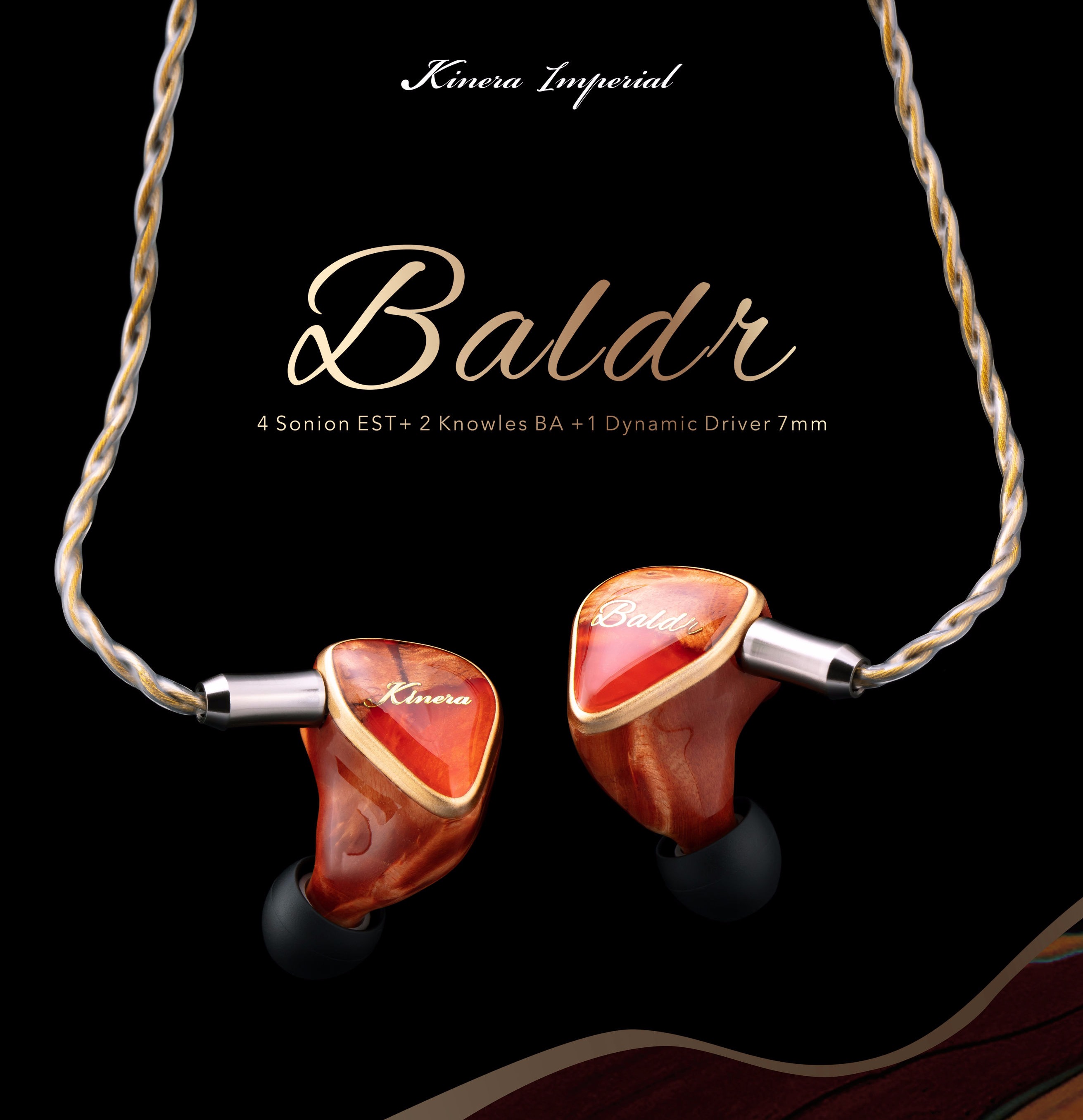 4EST+2BA+1DD 合計7ドライバハイブリッドIEM 北欧神話における太陽の化身「Baldr(バルドル)」プレミアムオークウッドをハウジングに採用したKienraのフラッグシップモデル