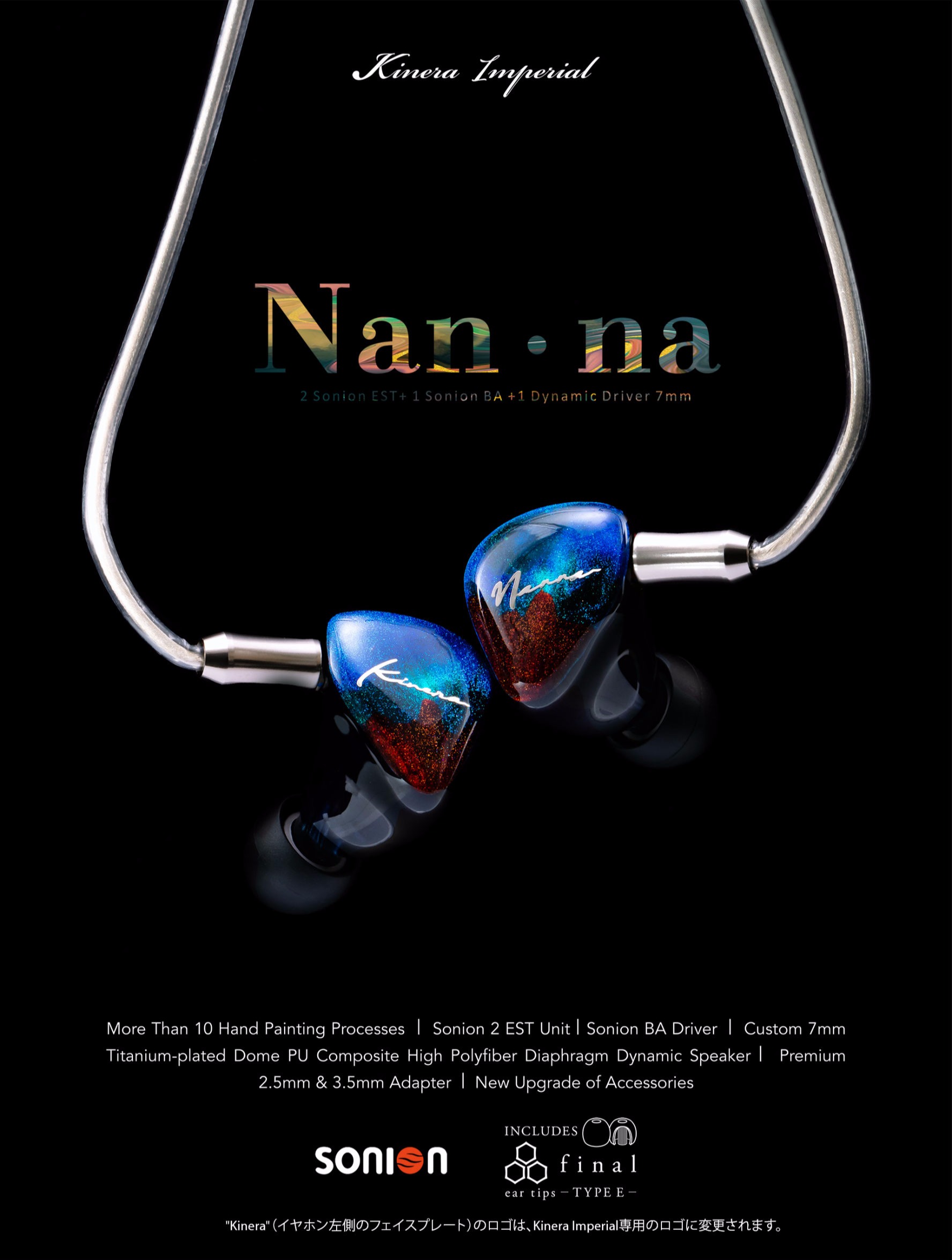 Knowless 2バランスドアーマチュア+KineraカスタムBA2基+Kineraカスタム1ダイナミックドライバ Kinera Imperial ラインの第一弾IEM