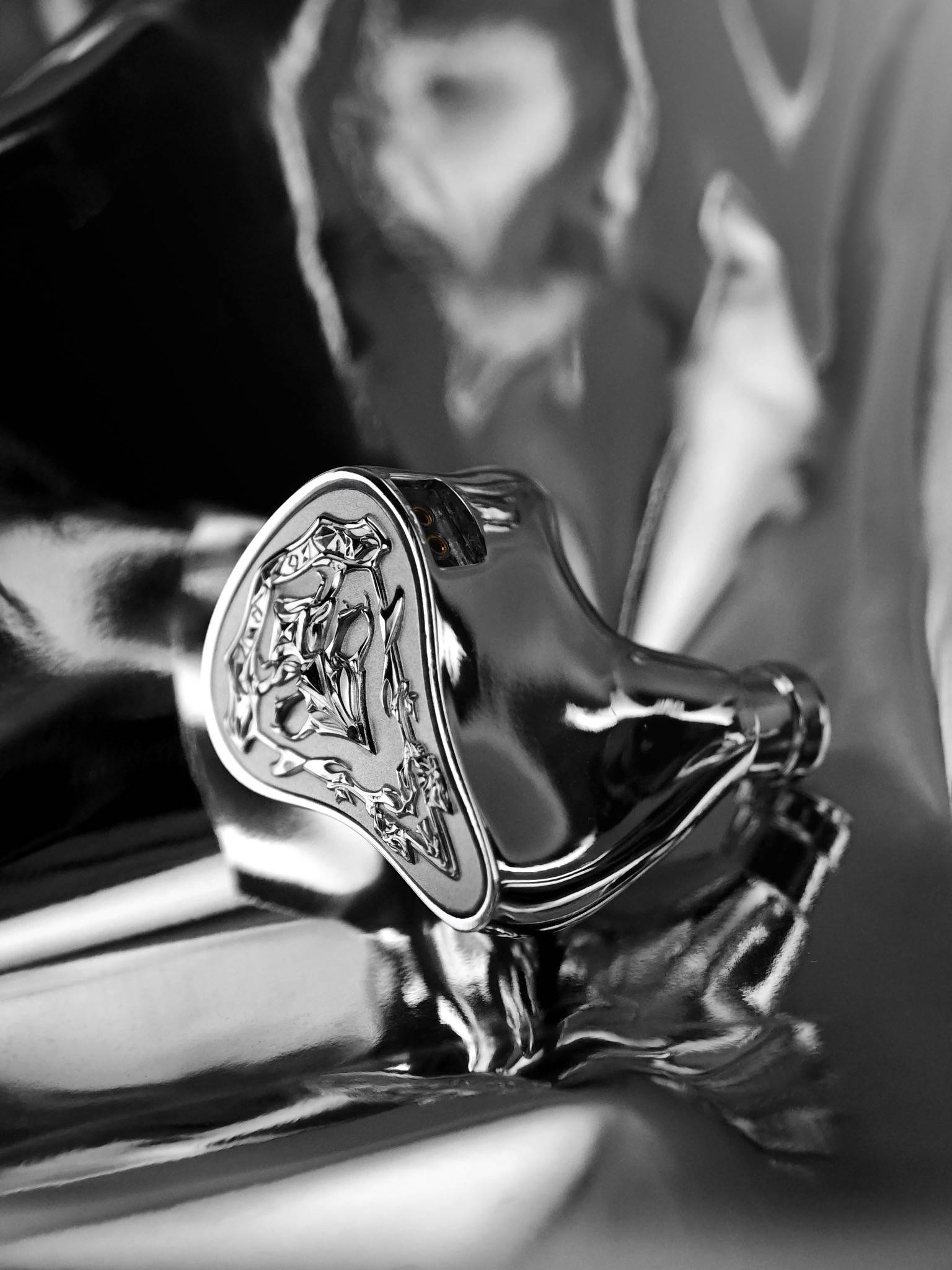 Sonion社製2EST+Kiera 2DD+Kinera Custom 1BAの5ドライバハイブリッドImperialURD(インペリアルウルド)ハウジングは精密な3Dプリントにより幾層にも重ねられたフェイスプレートに、KineraImperialのアートデザイナーによる手作業によるデザインが施されているKinera Imperialの新世代IEM