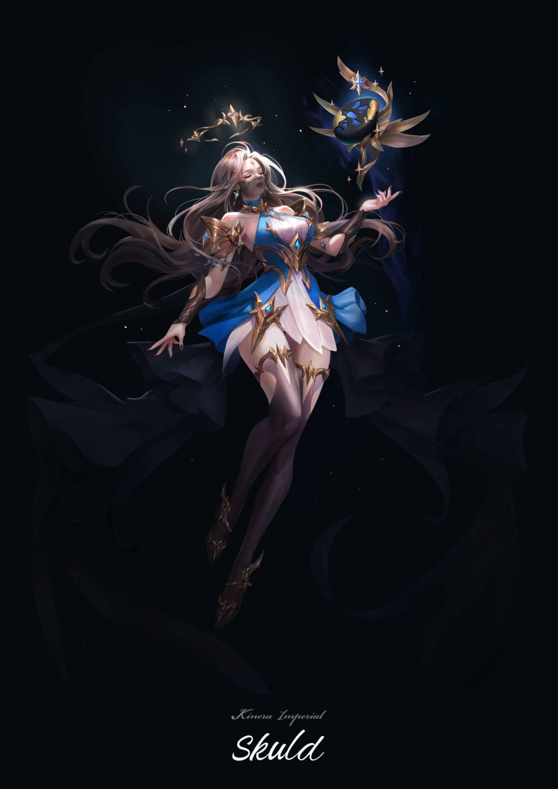 Skuldは未知の光のベールの下に神秘さを備えています。